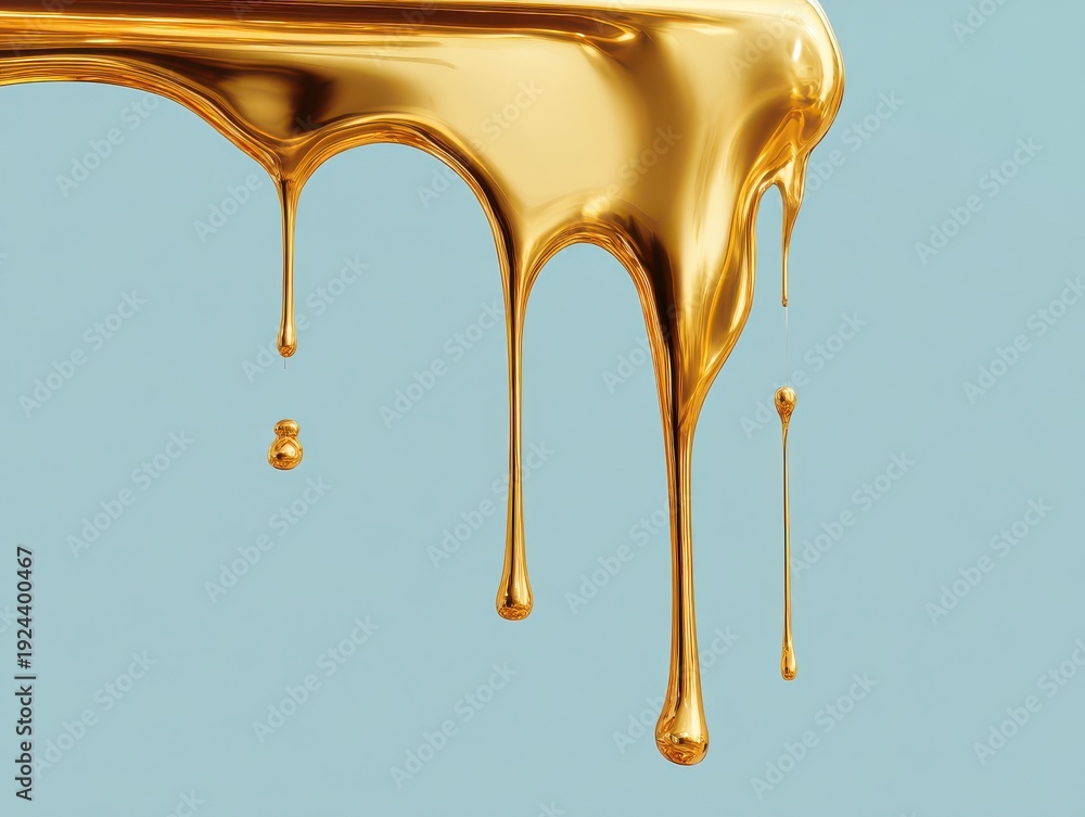 molten gold drip isolated on a blue background #1924400467