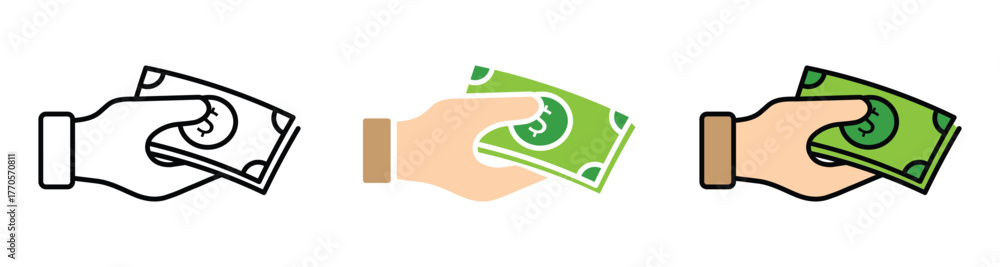 Money in hand icons. Hand holding cash symbol. Transparent PNG and vector #1770570811