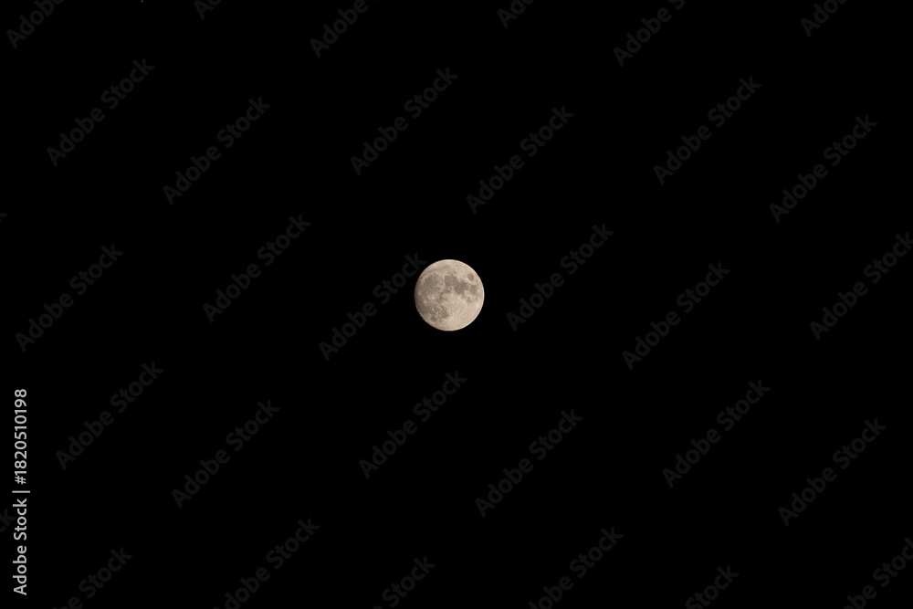 Moon shot with full dark sky. Full moon shot with a tele lens in October, Europe #1820510198