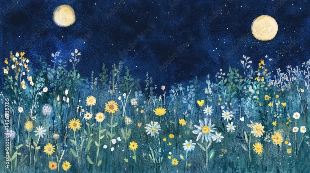 Moonlit meadow basks in starlit night #1426138785