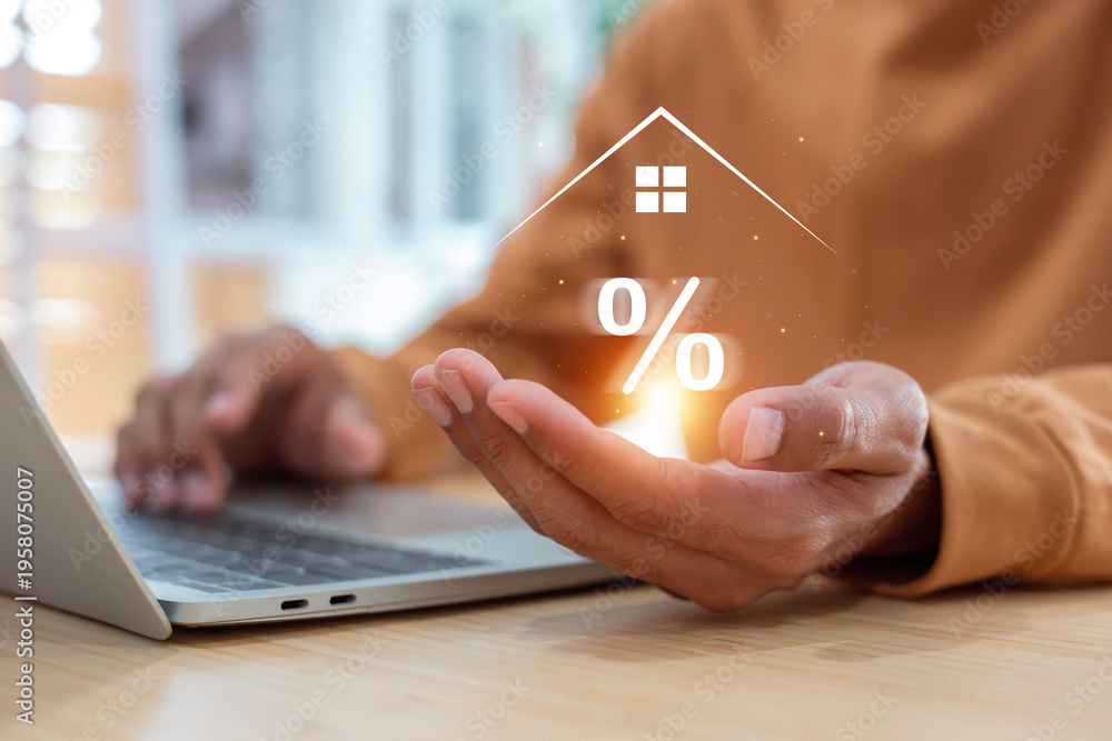 Mortgage Interest Rate Analysis and Real Estate Investment Planning with Financial Data on Laptop Screen. #1958075007