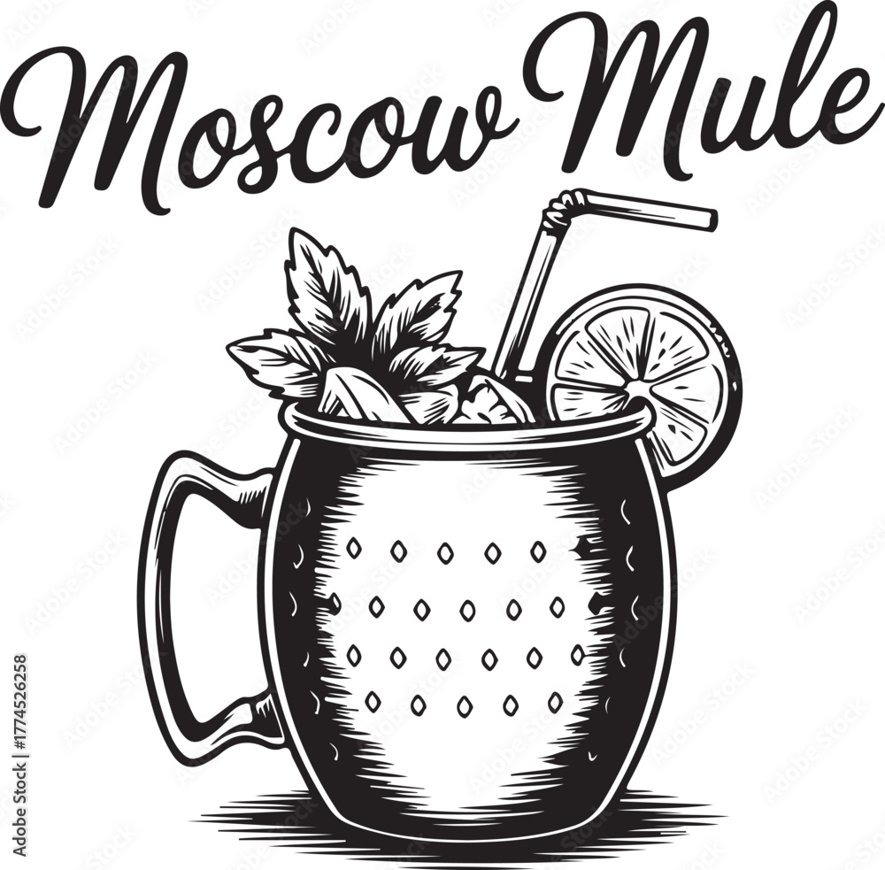 Moscow Mule Cocktail Illustration in a Copper Mug with Lemon and Mint Garnish #1774526258