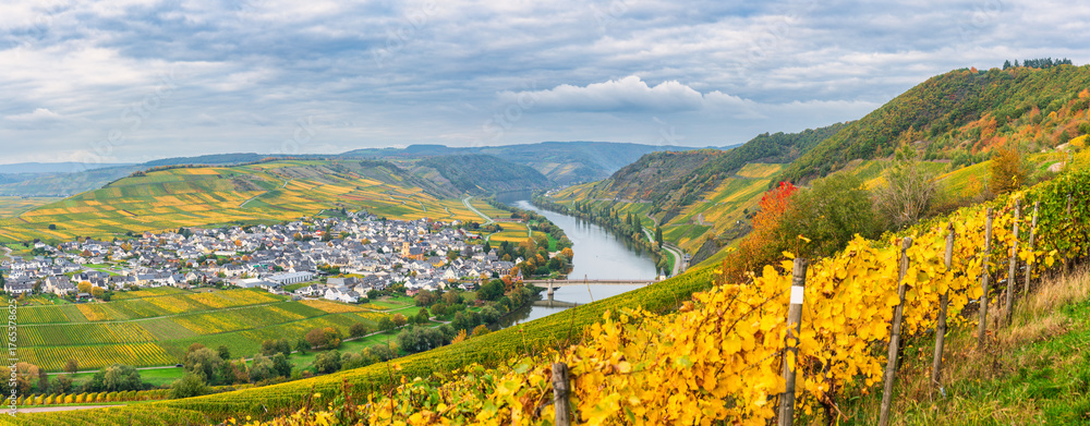 Moselle river loop and Trittenheim village seeon from Zummethöhe viewing point in autumn season. Germany. Europe #1765378625