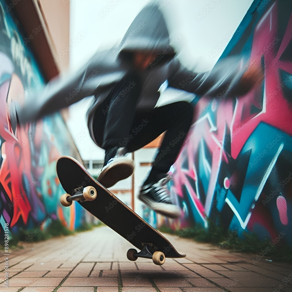 Motion Blur: A fleeting moment of youthful exuberance, captured in the vibrant blur of a skater boy's daring flight #898281578