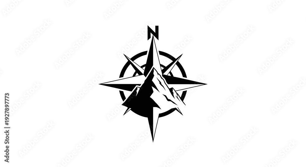 Mountain Compass Rose Logo for Outdoor Adventure and Navigation Symbol #1927897773