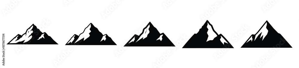 mountain peak silhouette vector icon set, black color and white background #1878677514