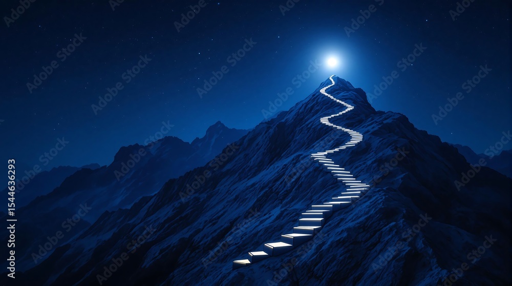 Mountain peak with stairs leading to bright light achievement success concept wallpaper background #1544636293