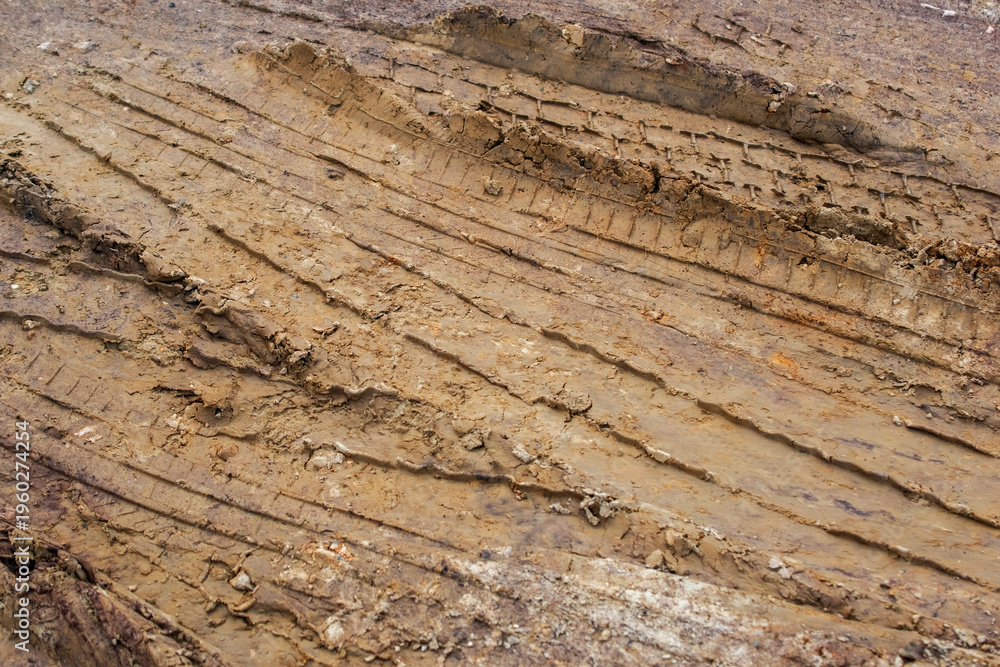 Muddy Offroad Vehicle Tracks in Rural Dirt Road #1960274254