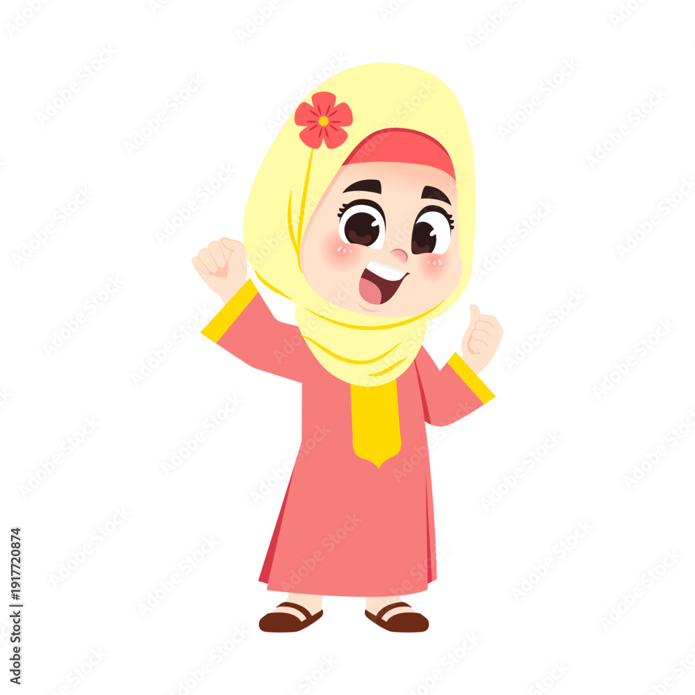 Muslim Girl Red Dress Winning One Hand Fist Up #1917720874