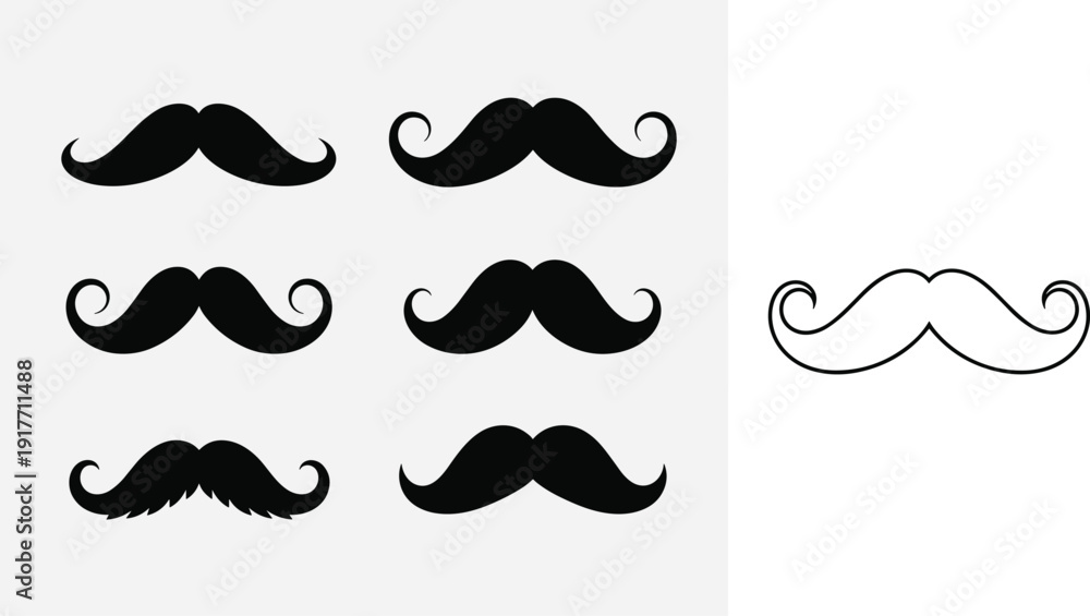 Mustache icon set with vintage handlebar and modern styles for barbershop grooming male fashion and movember vector illustration #1917711488