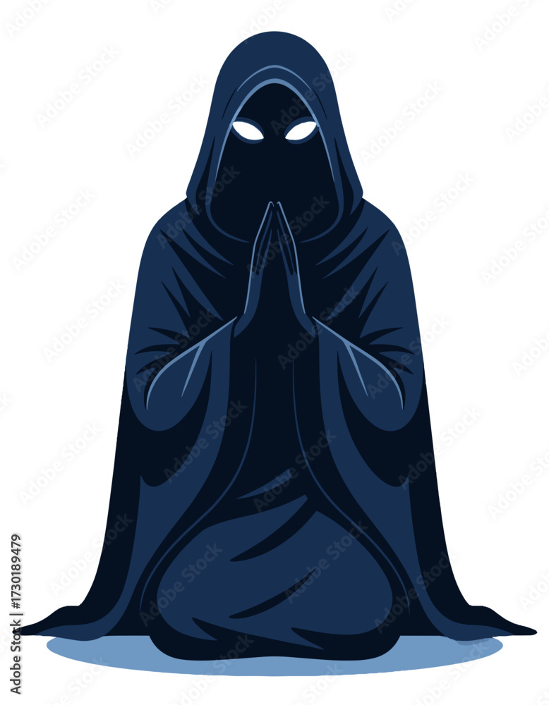 Mysterious Hooded Figure Praying Pose Monk Sorcerer Dark Isolated #1730189479