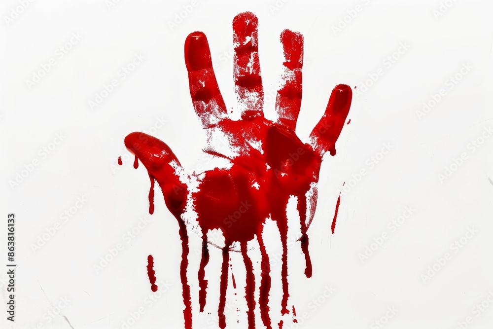Mysterious silhouette of a bloody handprint on a surface in the dark #863816133