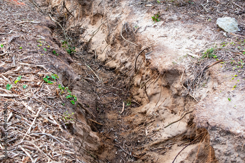Narrow Trench Dug in Sandy Soil #1960274202