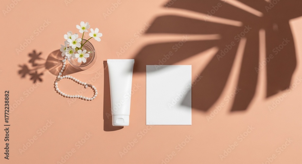 Natural Skincare Product Mockup with Botanical Leaf Shadows on Warm Background #1772238882