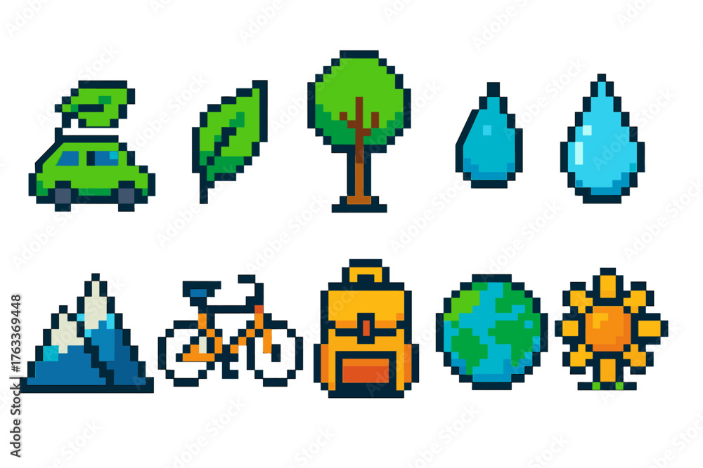 Nature and adventure pixel icon set. Outdoor, travel outdoor icons collection. #1763369448