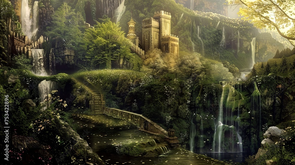 Nature's Symphony: Majestic Landscapes with Castles, Waterfalls, and Mountains #753422896