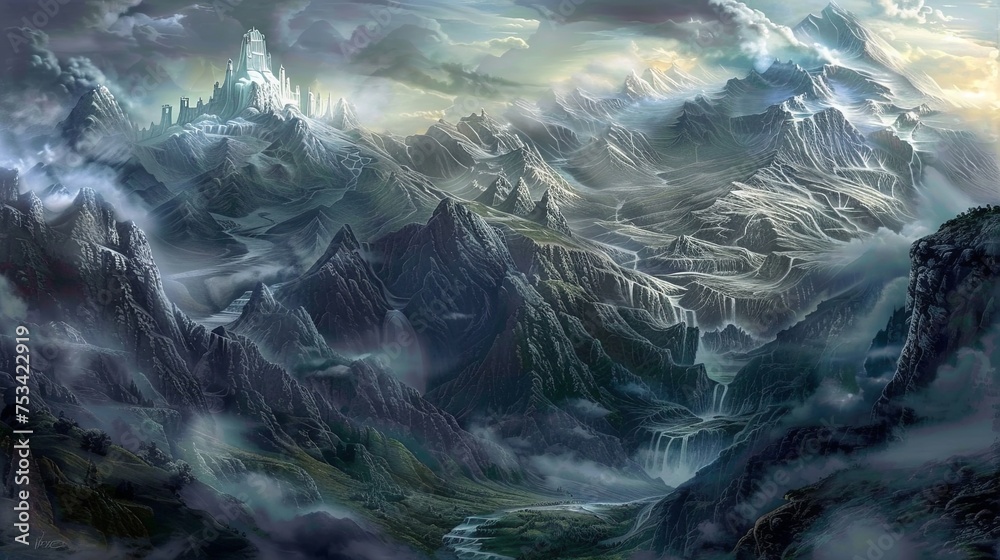 Nature's Symphony: Majestic Landscapes with Castles, Waterfalls, and Mountains #753422919