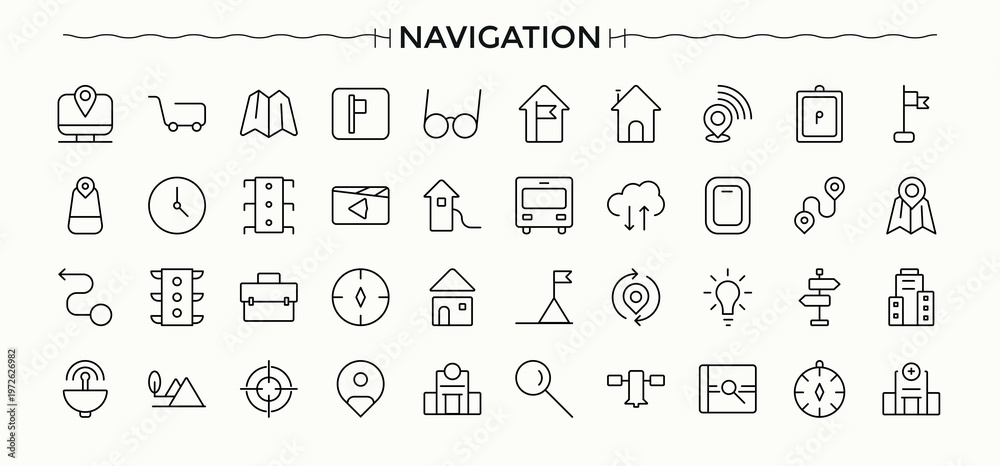 Navigation icon. Minimal thin line web icons set. Editable vector illustration. Destination line icon set. Related to travel, road, destination, arrow and more. #1972626982
