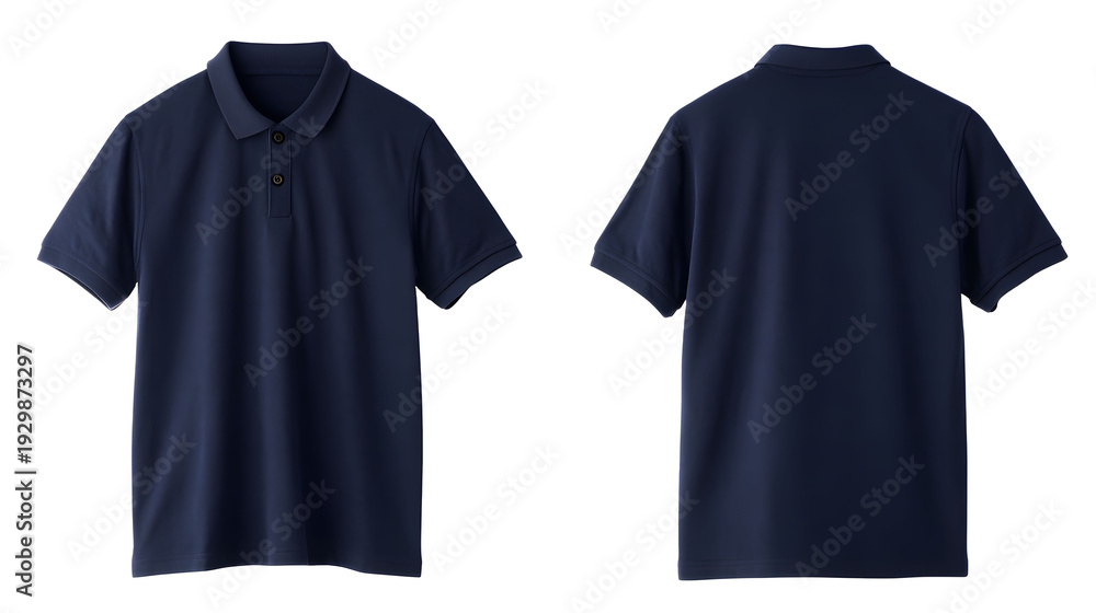 Navy polo shirt flat lay mockup with front view and back view isolated on white background #1929873297