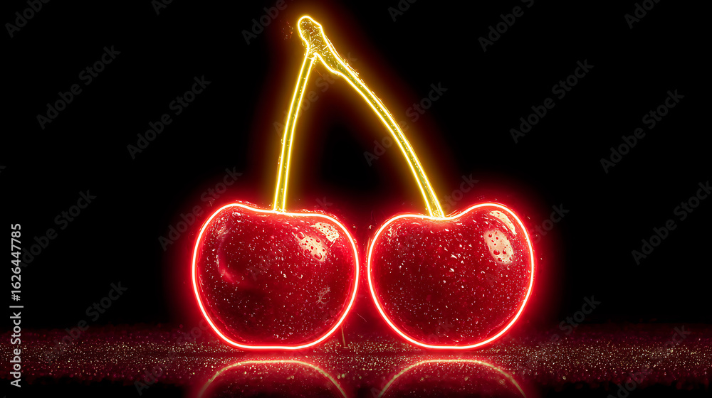 Neon cherry illustration with vibrant red and yellow glow #1626447785
