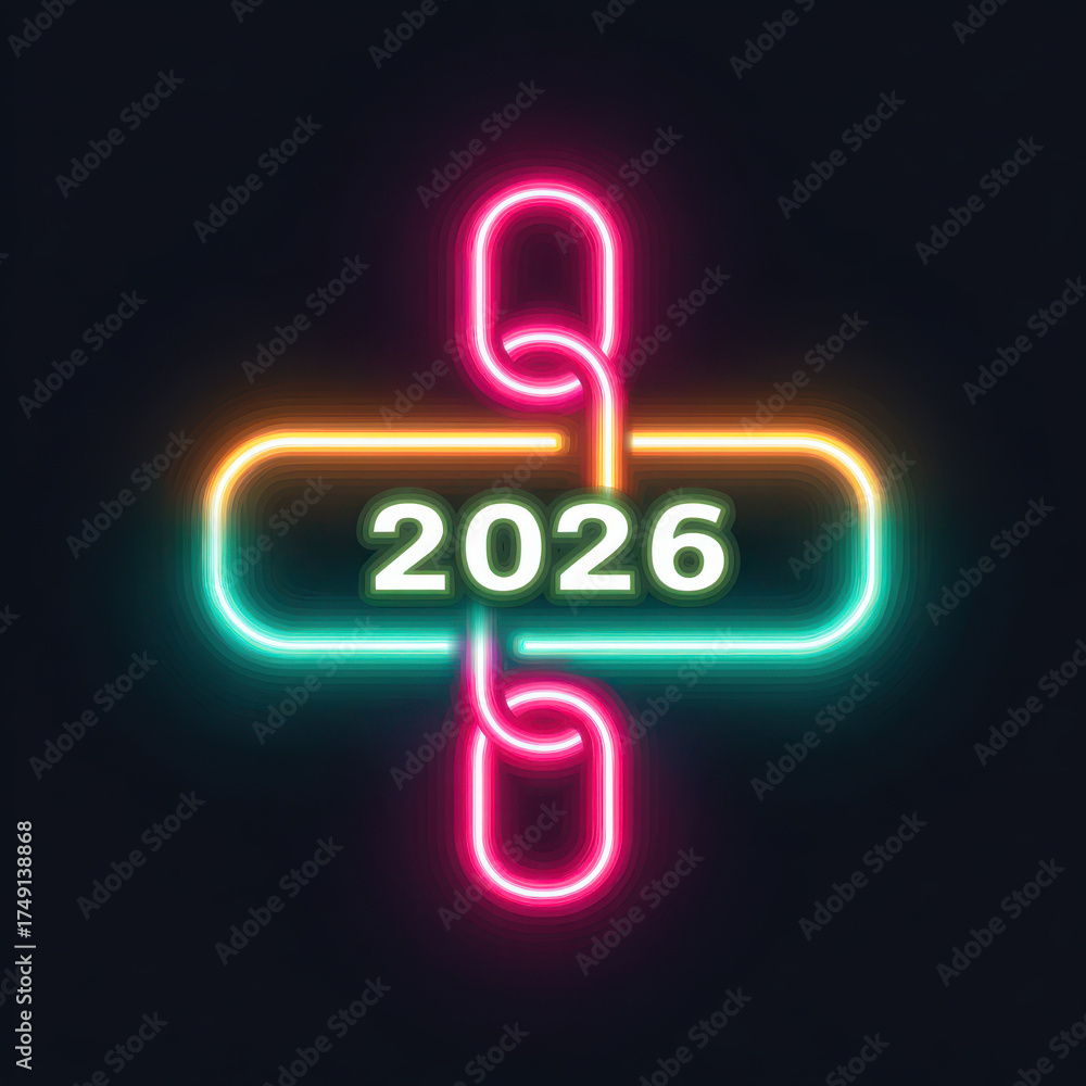 Neon 2026 year symbol with interconnected chains glowing against dark background #1749138868