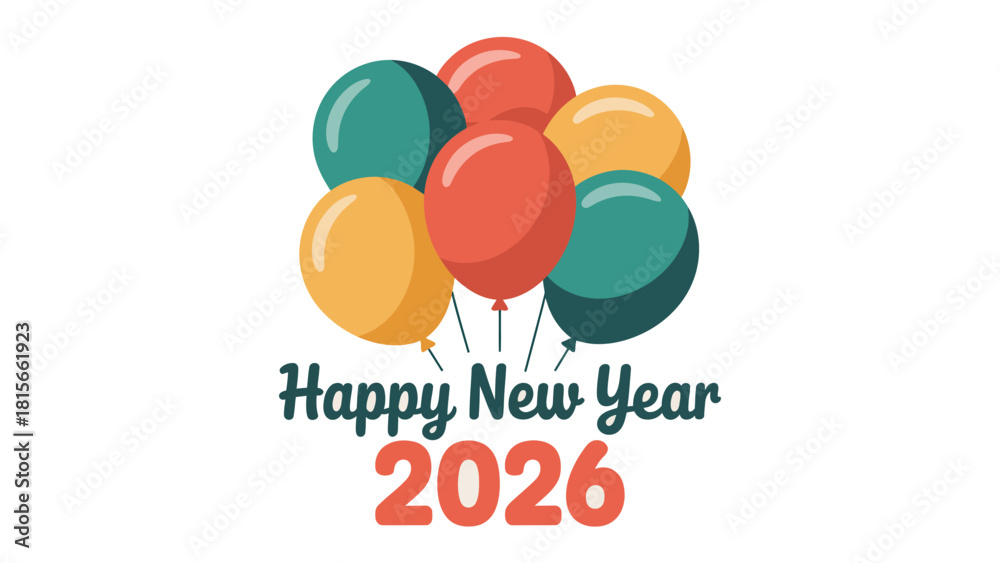 New Year 2026: Balloons rising with the wish of celebration and festive season. Wishing you with a vibrant colorful balloons design with new year greetings. #1815661923