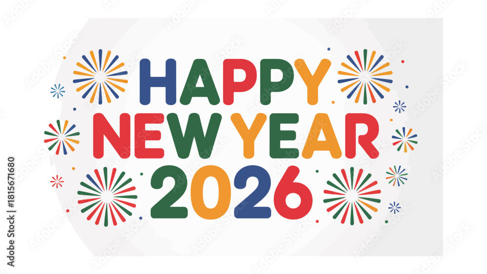 New Year 2026: Bright typography with fireworks elements marks a fresh start, looking forward to the future. #1815671680