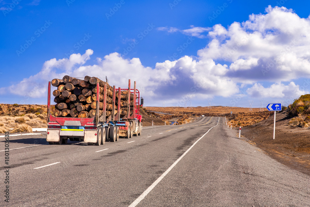 New Zealand - Logging Truck on the Desert Road, passing through the Rangipo Desert. #1801303633