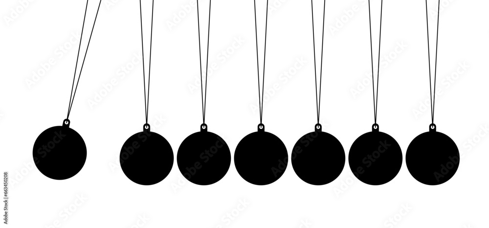Newton's cradle, pendulum with swinging spheres or ball. Business, leadership, teamwork or communication concept. Hanging balancing balls of newtons cradle science. Balance, Hypnosis, newtons cradle. #663450208