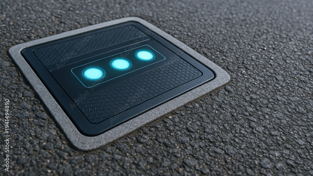 Next gen engineering solution infrastructure urban tech road panel offers smart subtle glow for safer traffic night guidance #1941494890