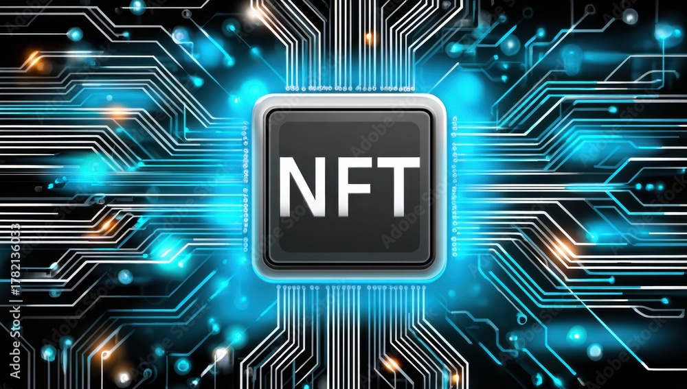 NFT Token On Circuit Board Background Digital Art Cryptocurrency Concept Blockchain Technology-related #1782136033