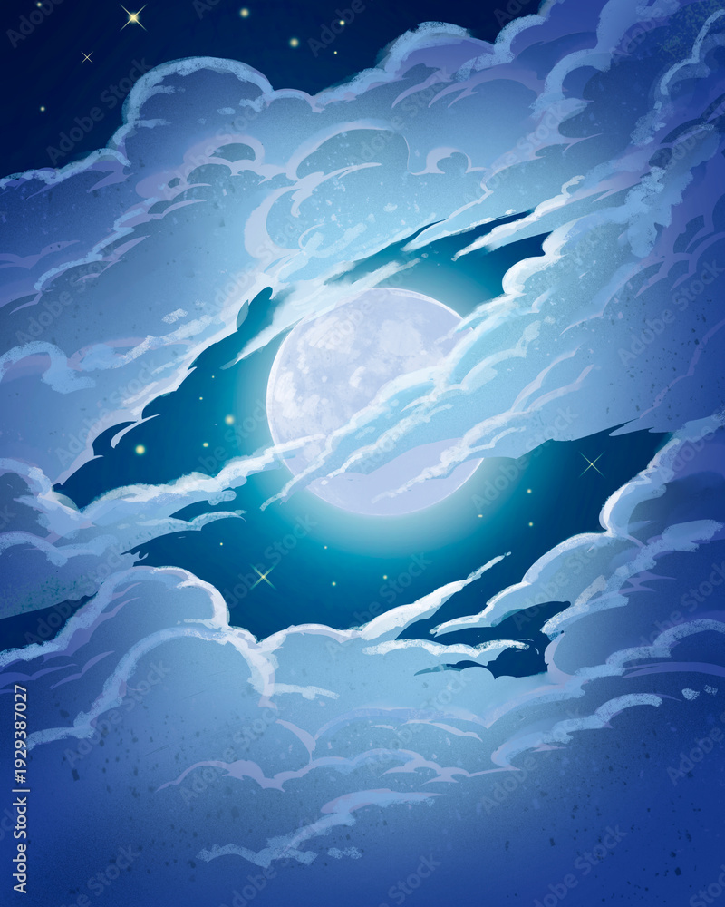 Night sky background illustration with moon and clouds #1929387027