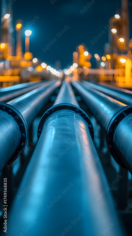 Nighttime View of Oil Pipeline at Industrial Refinery Plant #1749568835