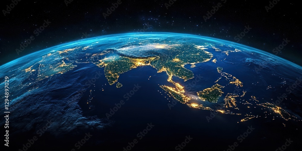 Nighttime View of Southeast Asia with Vibrant City Lights from Space #1294897029