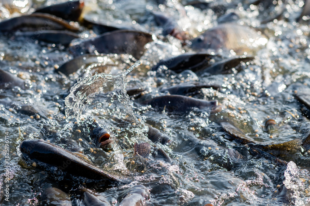 Nile Tilapia is eating food, Lots of fish #1825196714