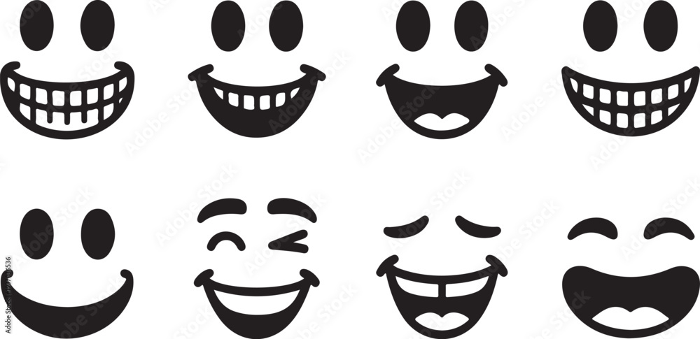 Nine Different Black and White Emoji Faces Expressing Various Emotions smile #1937036536