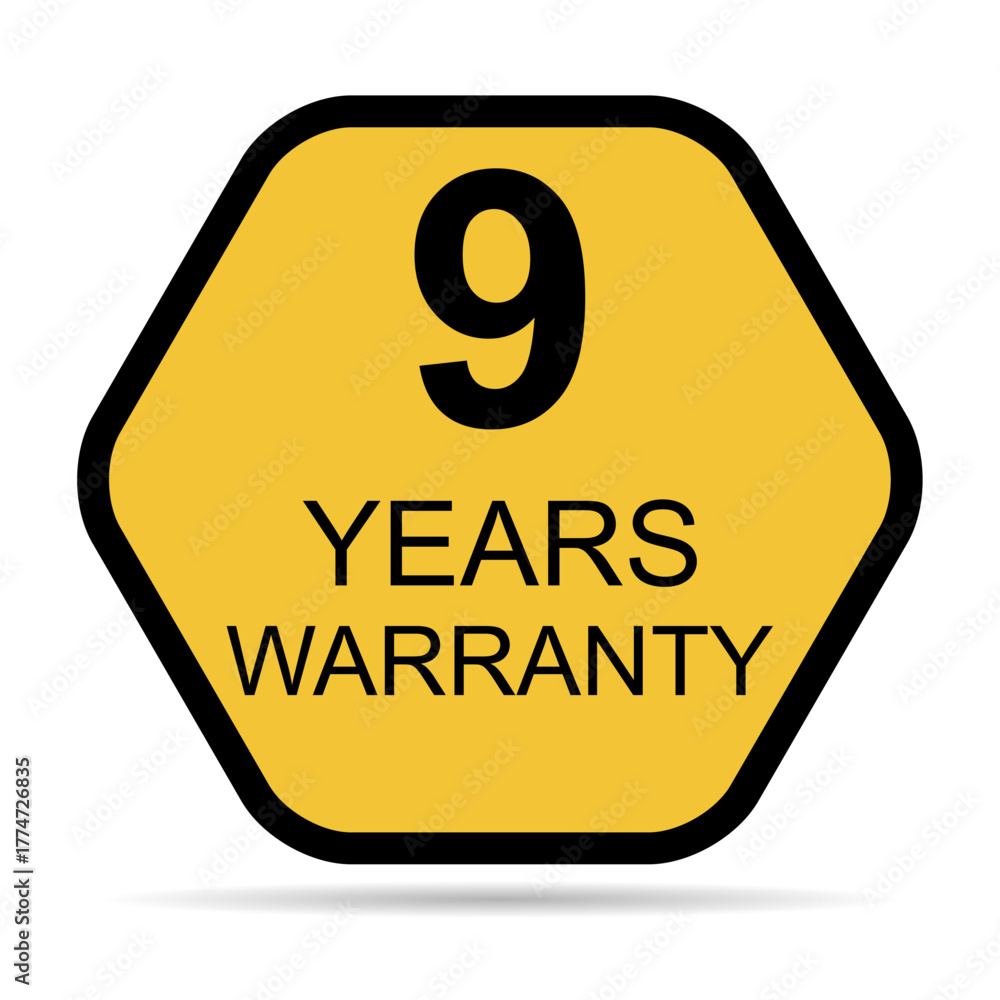 Nine years warranty shadow icon, badge seal guarantee certificate customer sign, stamp vector illustration . #1774726835