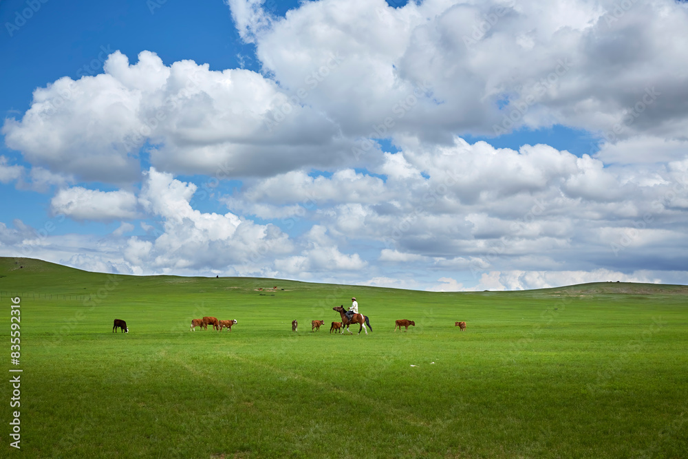 Nomads herding cows in the vast grasslands of Burd, Mongolia. #835592316