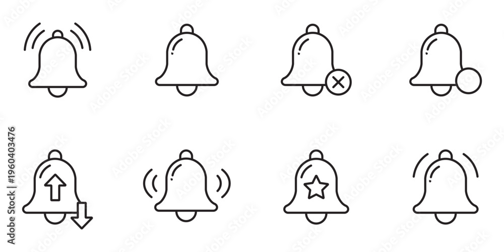 Notification bell icons set for social media and application alerts and reminders. Bell icons with notification symbol. #1960403476