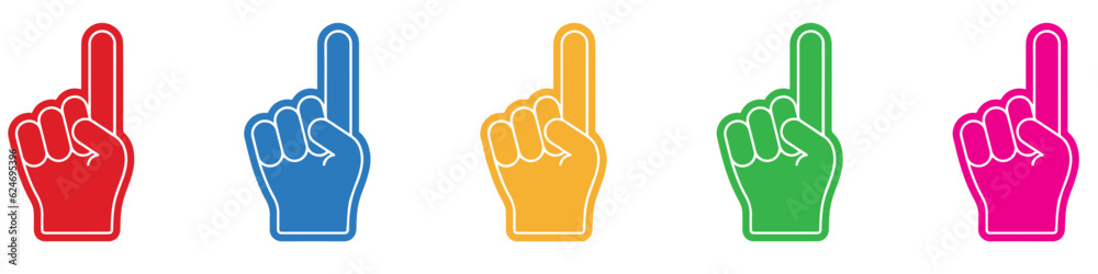 • #624695396 Number 1 one sports fan foam hand with raising forefinger vector icon