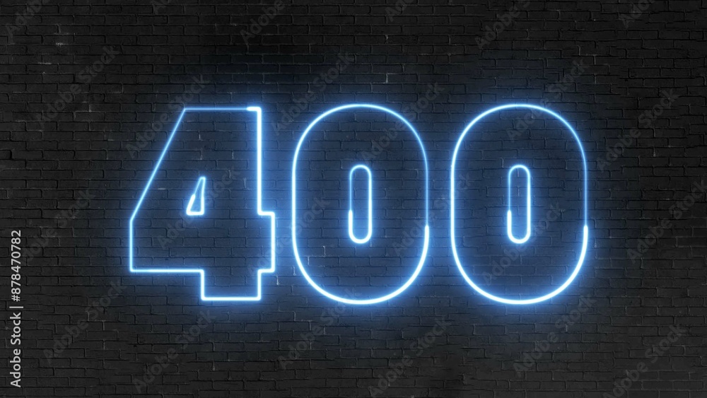 400 number text font with light. Luminous and shimmering haze inside the letters of the text 400. Four hundred neon sign. #878470782