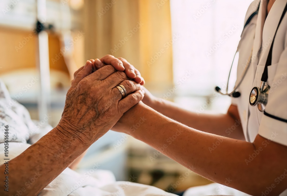 Nurse consoling senior woman holding her hand pensioner, nurse, hand, woman, holding hands, senior, holding #1905616866