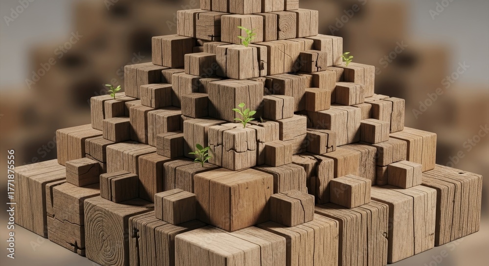 Nurturing growth from stacked wooden blocks symbolizes business development and new beginnings, inspiring progress and organic expansion #1771875556