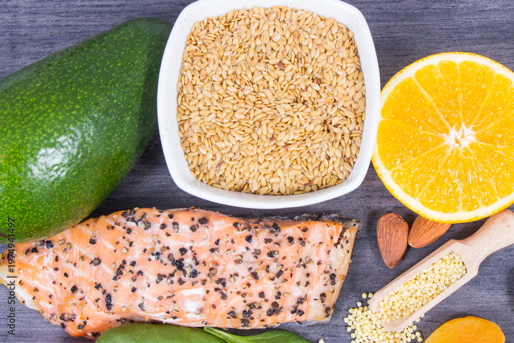 Nutritious products and ingredients containing differents vitamins or minerals for healthy hair #1974941497