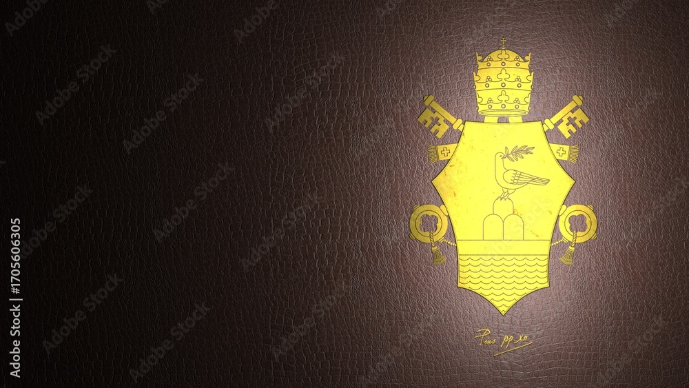 O brasão de Pio XII, o último Papa até então. Papel de parede para desktop em alta resolução - Ilustração 3D #1705606305