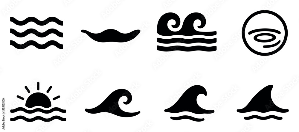 Ocean, waves silhouette icon set. marine, sea life icons silhouette collection #1555125100
