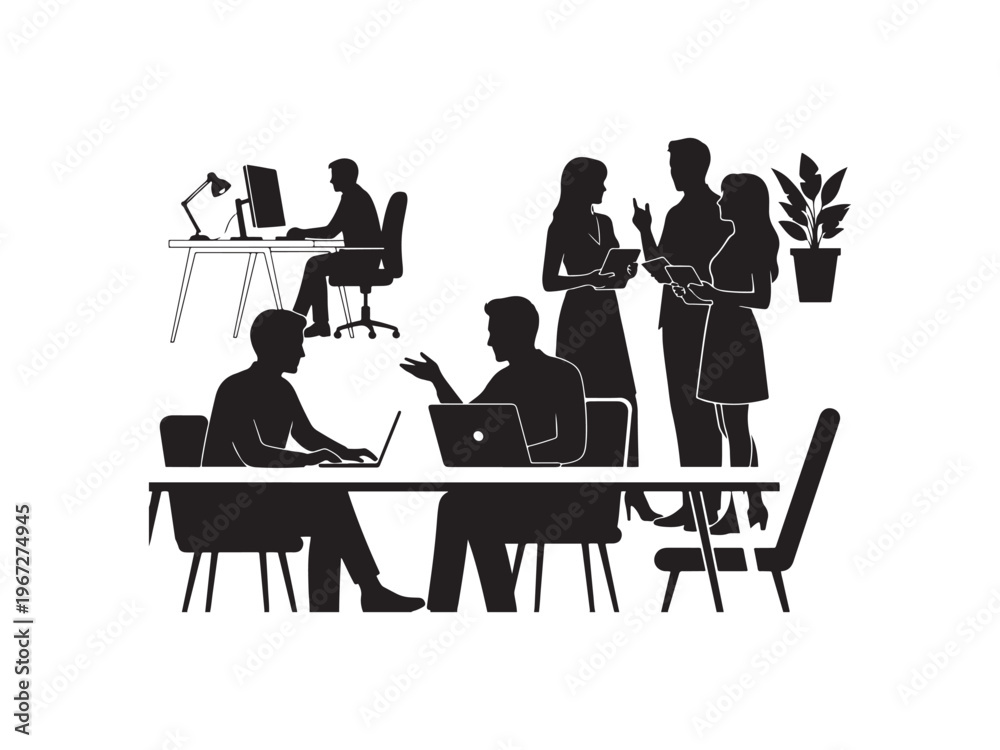 Office team collaboration and individuals working on computers on white background. #1967274945