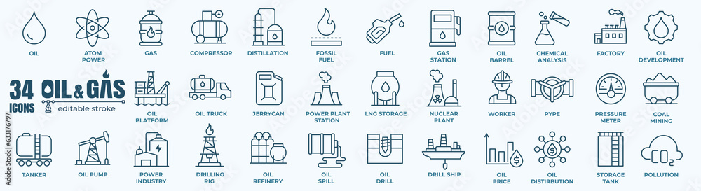 Oil and gas - thin line web icon set. Outline icons collection. Simple vector illustration. #633176797