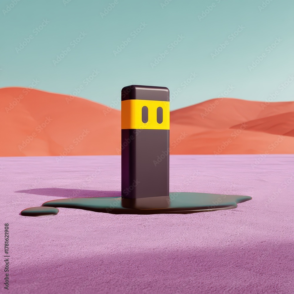 Oil spill on land with a large battery symbol emerging from it, Oil and Battery Conflict #1781621908