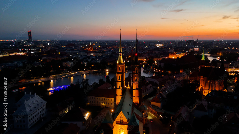 old European city city center view from above evening night illumination Wroclaw Poland #1739248821